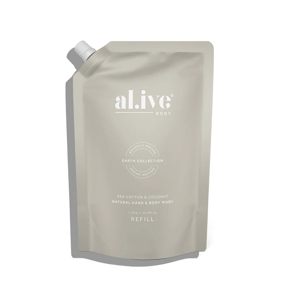 The al.ive body Sea Cotton & Coconut Hand & Body Lotion Refill contains a luxurious blend of naturally derived ingredients, fortified with essential oils and native botanical extracts.