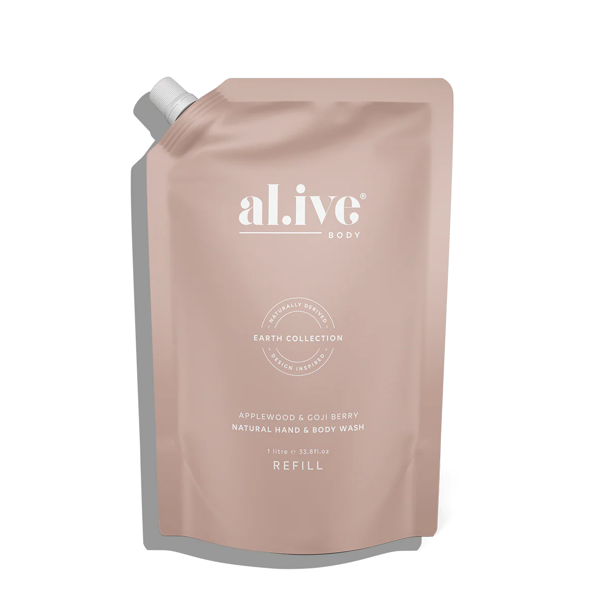 Our 1L refill pouches are designed to refill your existing al.ive body bottles whilst helping to reduce the amount of plastic used. Our refill pouches use 85% less plastic and refill your 500ml al.ive body bottle twice.