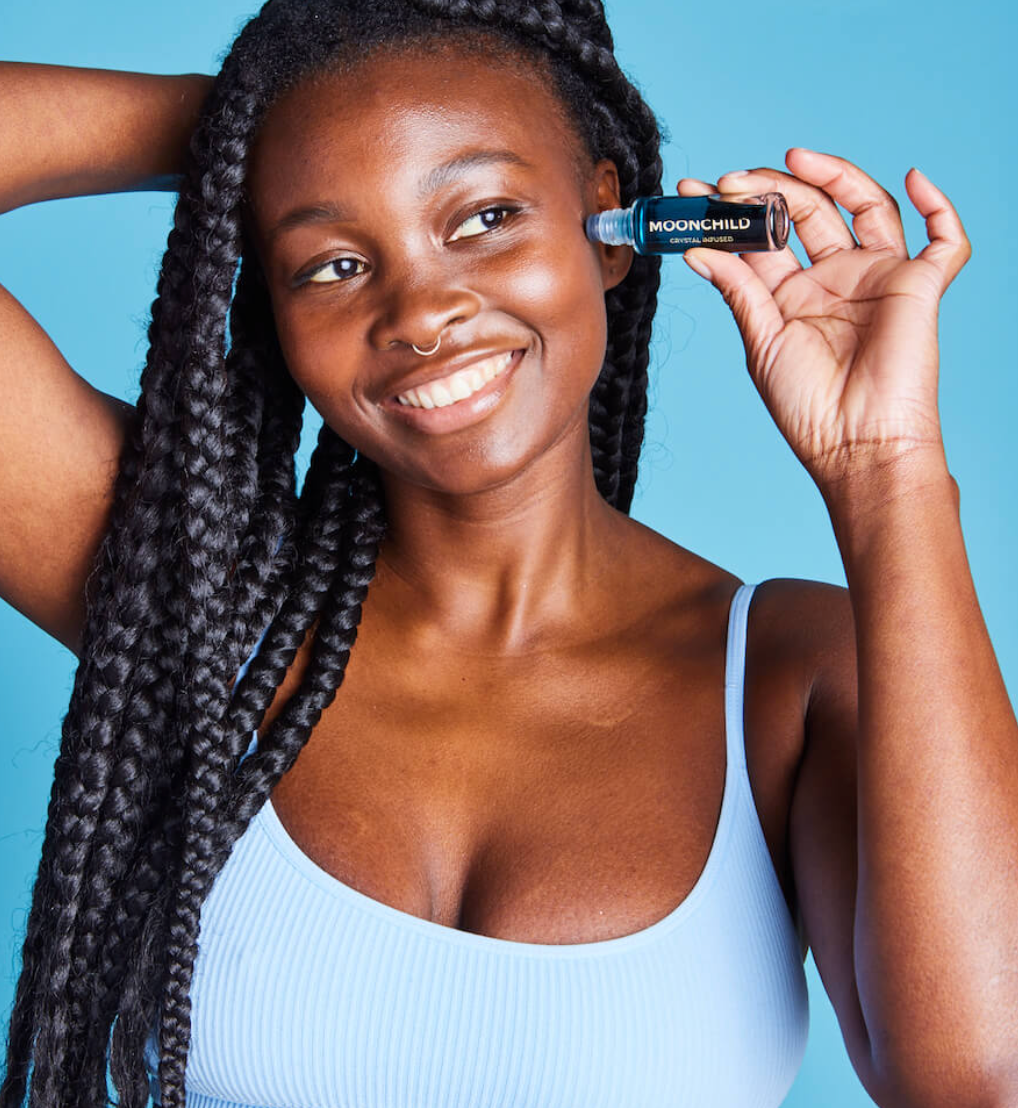 A crystal infused essential oil blend to help you thrive & flow. Perfect as a light natural perfume alternative. Combines Blue Tansy, Bergamot, Patchouli and Lavender Oil to melt away stress and anxiety. Blue Tansy is a rare and beautiful 100% natural essential oil extracted from the Moroccan Chamomile flower. It turns deep blue during the extraction process, giving this blend it's incredible colour. Features an Obsidian rollerball.
