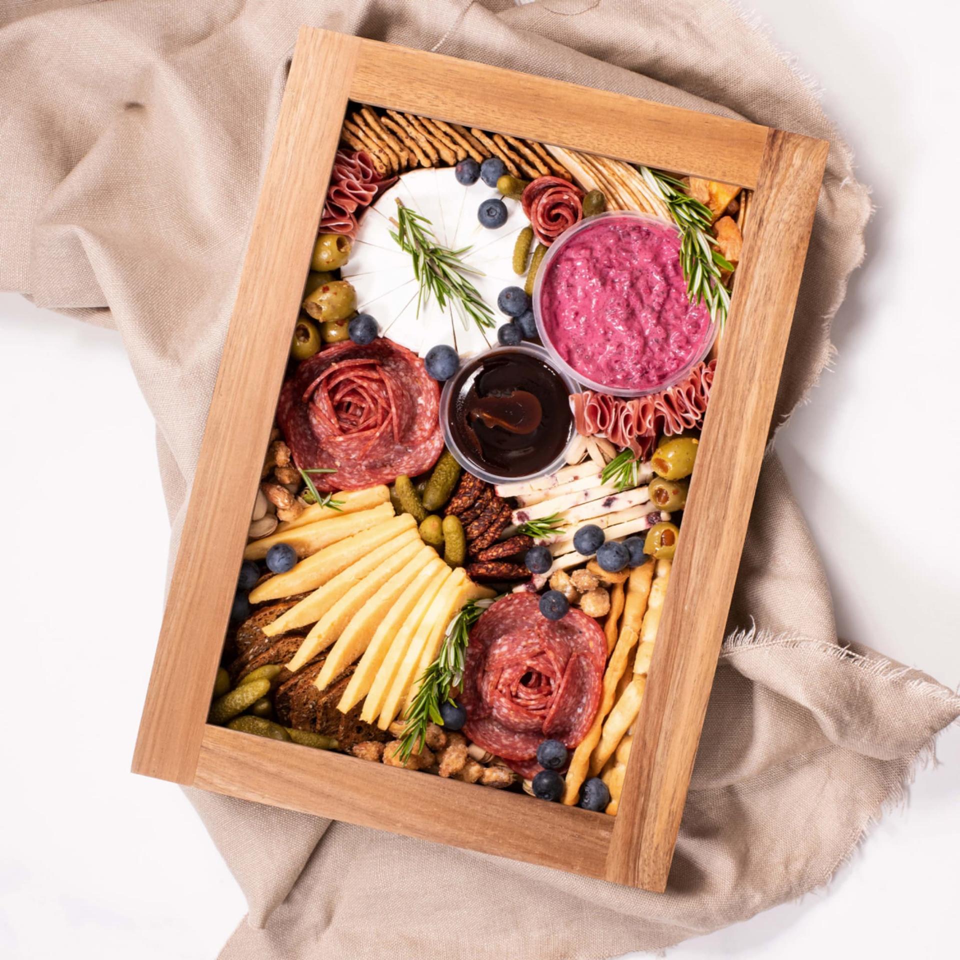 - Luxurious yet portable presentation of grazing platters, eliminating disposable plates and single use plastics