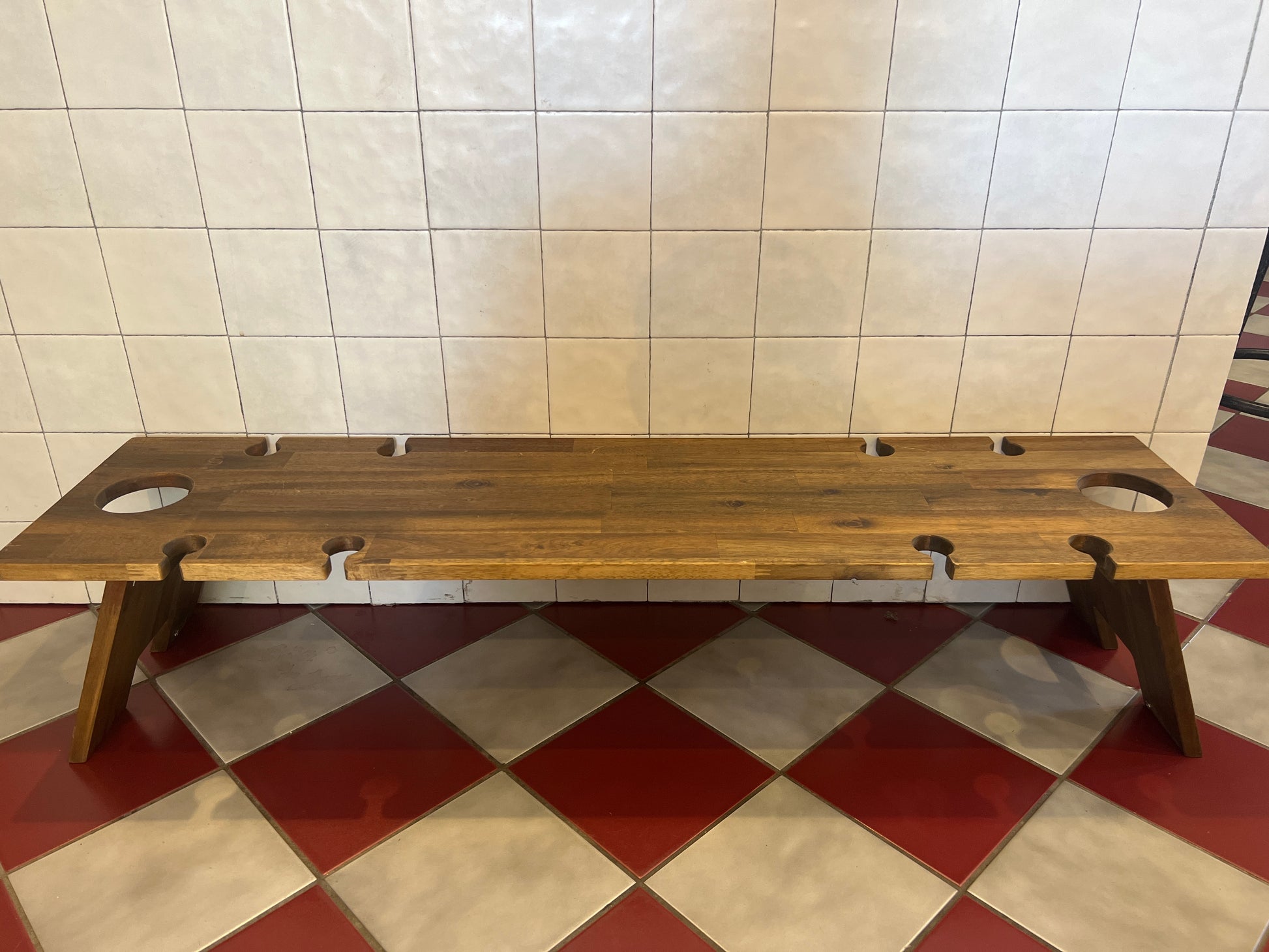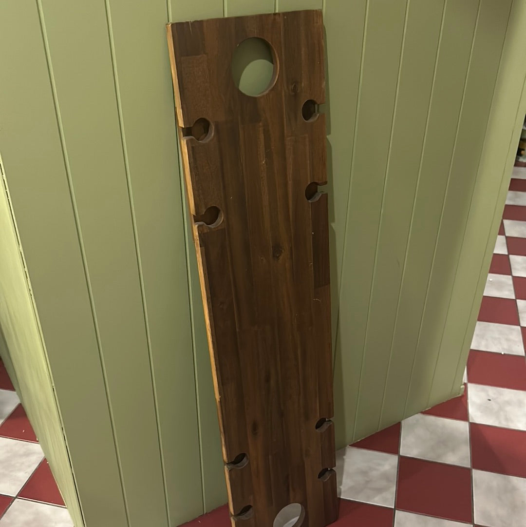 Indi Tribe hard wood folding table. Holds 8 wine glasses and a bottle. Perfect for outdoors and also entertaining for more space and table height.