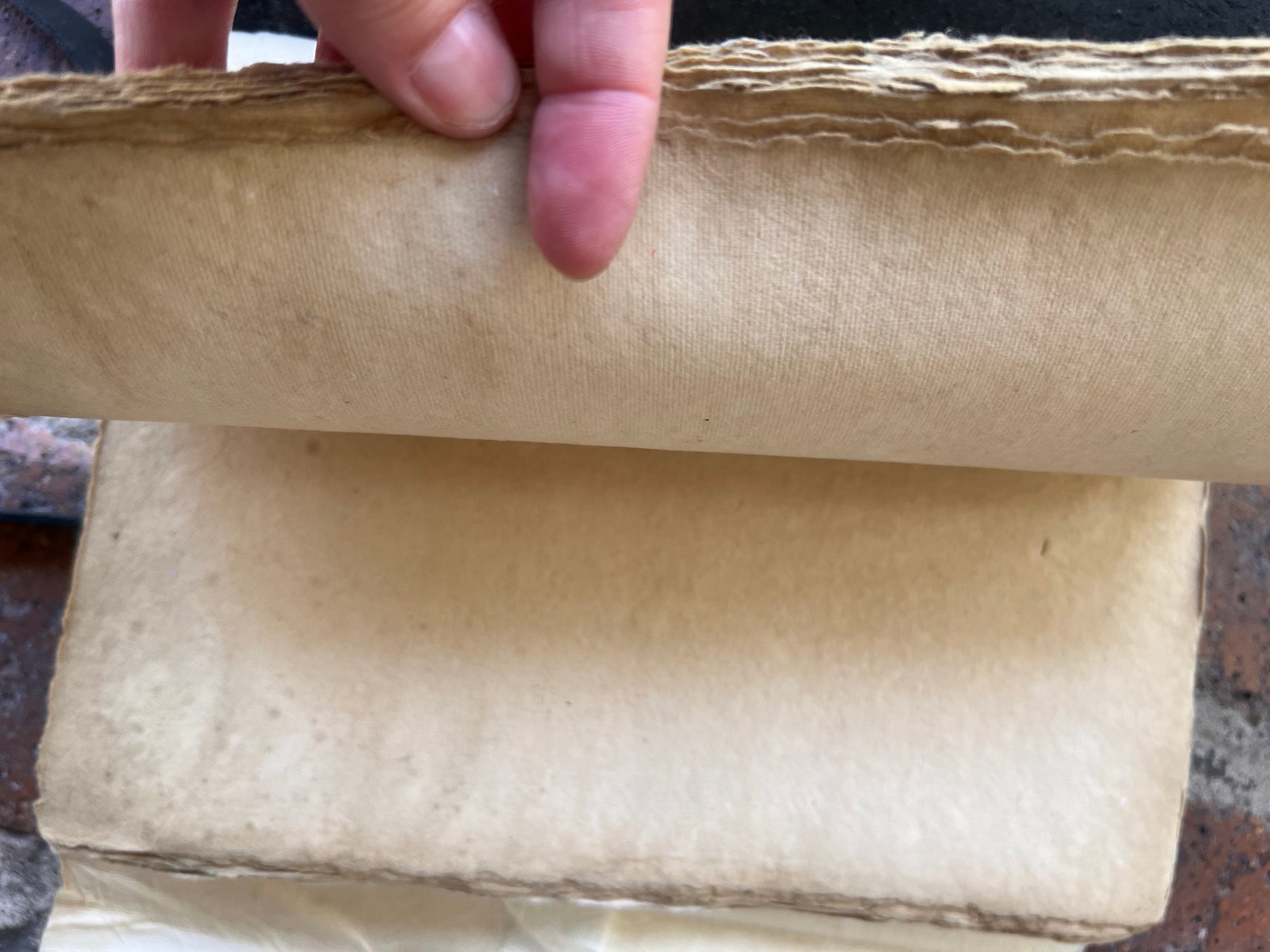 Hand Made from 100% recycled paper. Features 100% genuine cowhide leather cover for the journal.