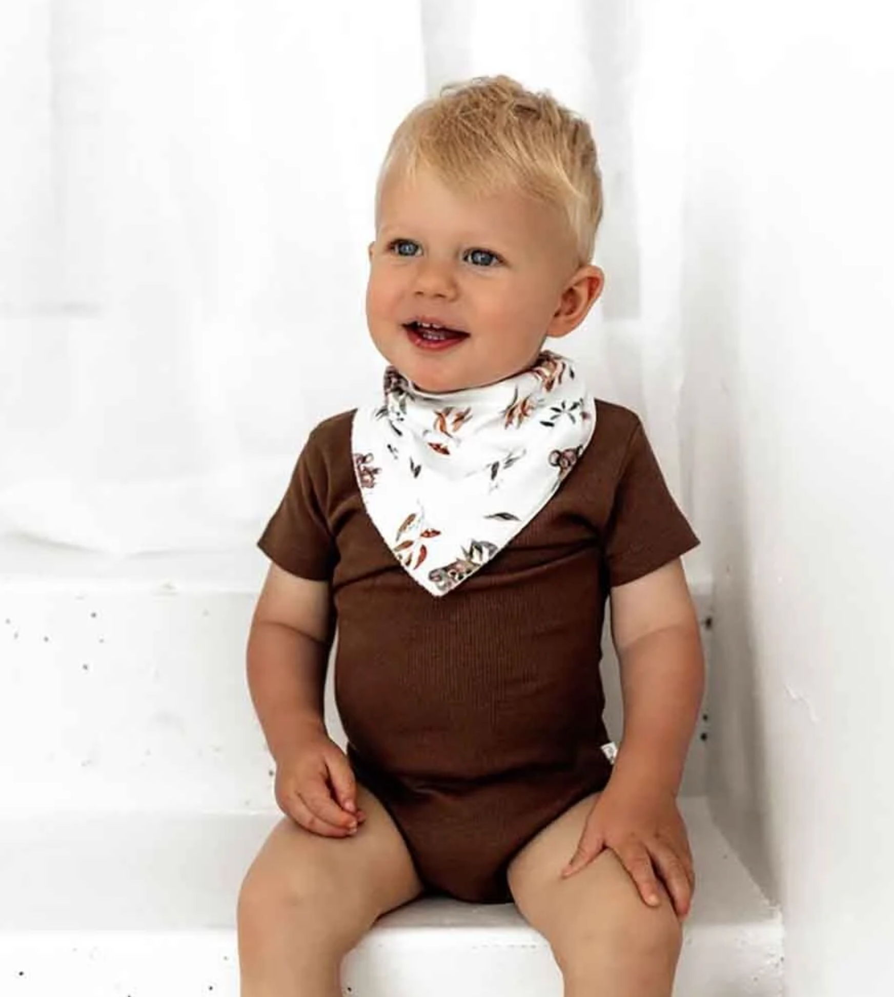 The bandana dribble bibs feature our exclusive prints on one side and luxurious organic terry cotton on the back. This dribble bib features our gorgeous Koala print. The bibs come with two easy snap buttons to adjust the fit and are machine washable. Our bibs make great gifts too.