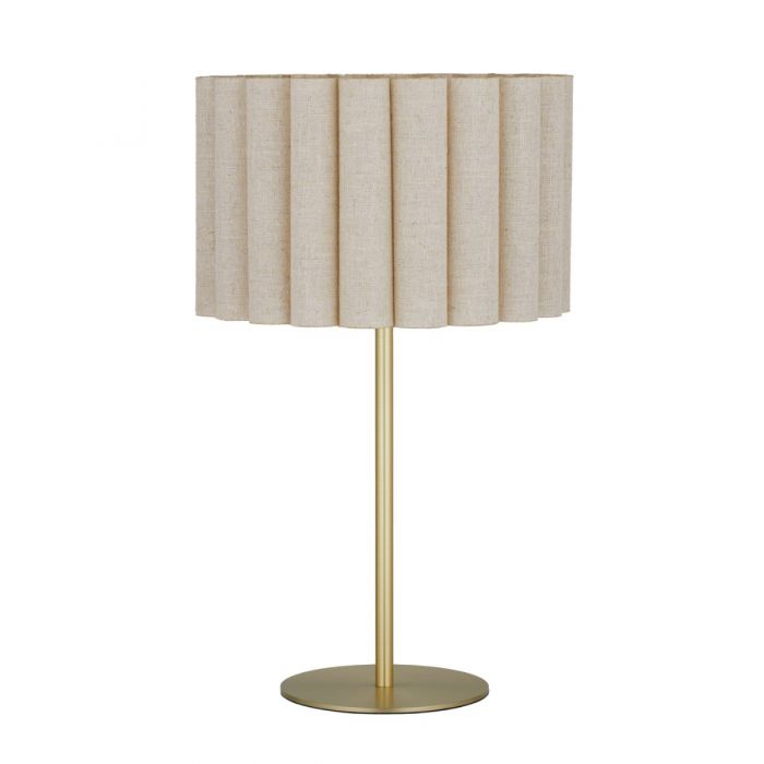 The Sombra is a stylish yet simple table lamp. It's striking slender gold metal base is topped with a natural linen scalloped fabric shade. It will add an element of sophistication to any room of the home. It will accommodate many globe types allowing you to create a level of brightness to suit your needs.